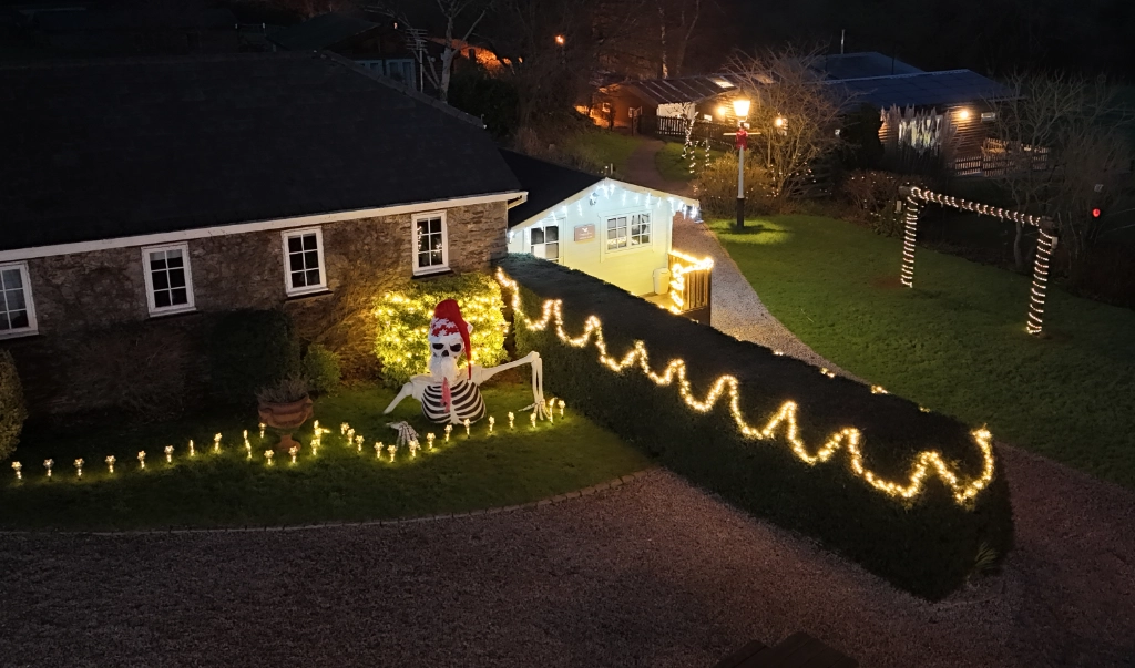 The grounds are lit up and our giant skeleton emerges from its slumber