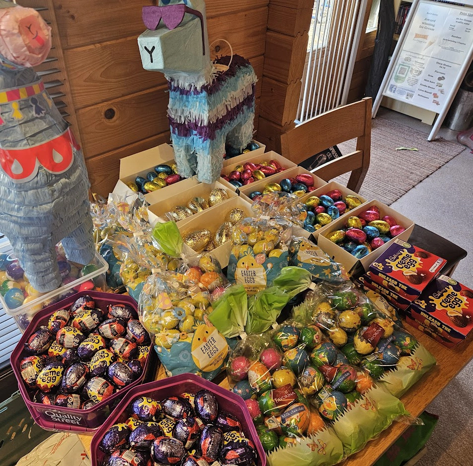 700+ Choccy eggs are hidden and then the kids are released to find them