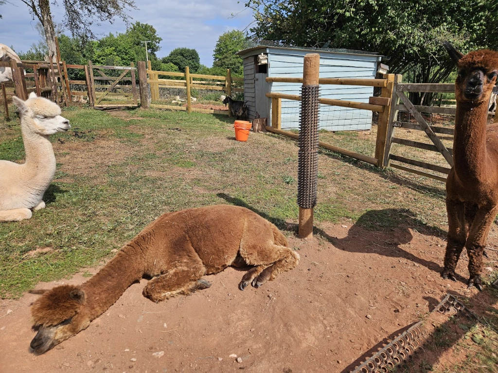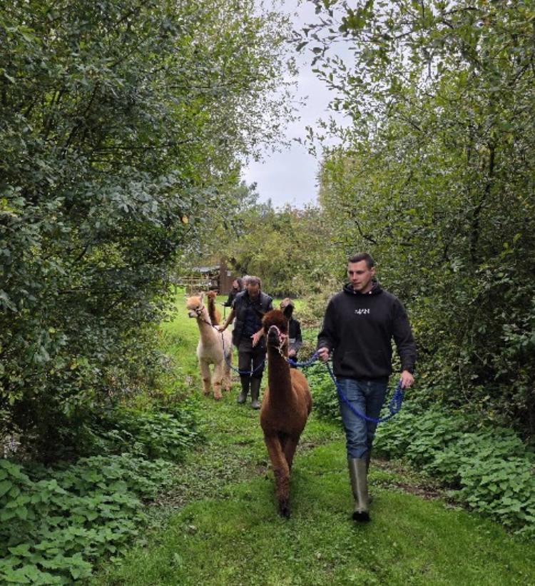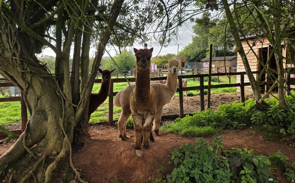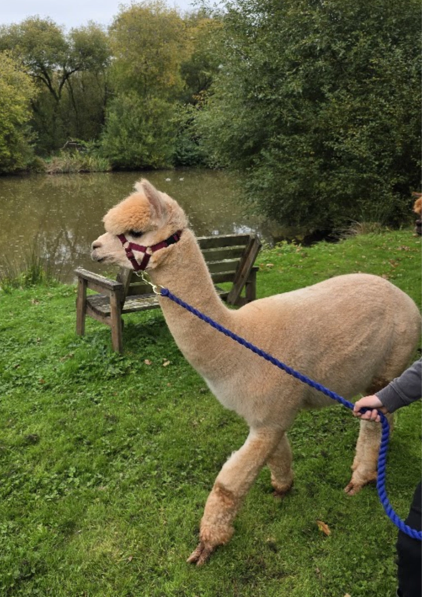 Our alpaca walks in Devon take place across the beautiful grounds at Compton Pool, offering a calm and hands-on experience led at the alpacas’ pace.