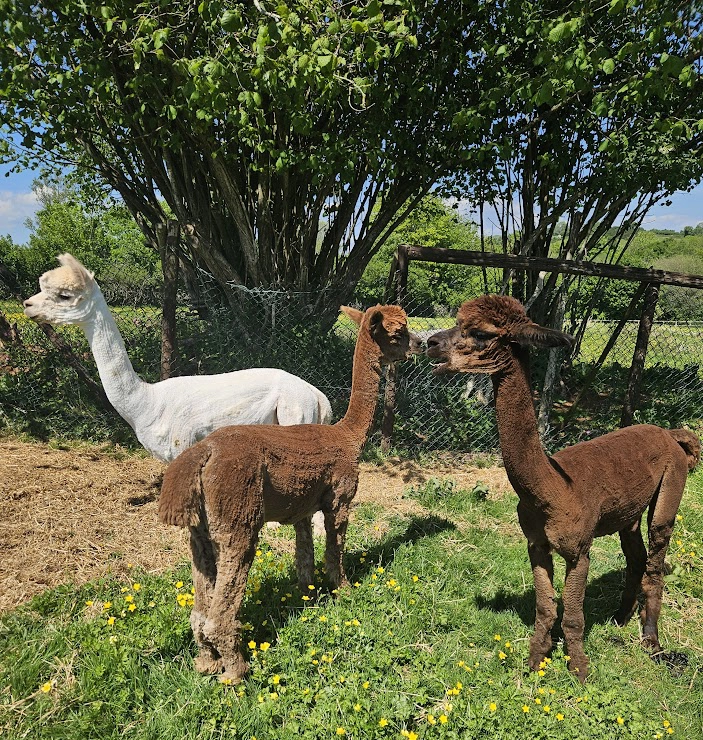 Alpaca walks at Compton Pool are led by our two resident boys.  Snoop and Ice, collectively known as AWA: Alpacas With Attitude. Alpacas are highly social animals and must stay together at all times, so walks always include all three, moving as a relaxed little herd through the countryside.