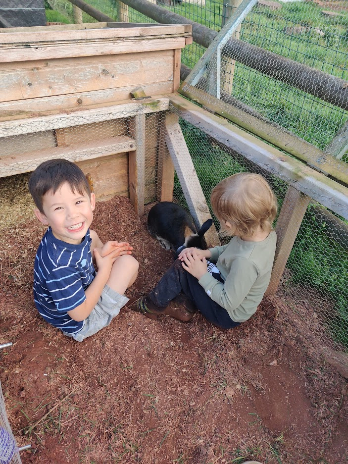 We provide a complimentary bag of animal feed for each day of your stay, included as part of your visit. The feed is suitable for our pigs and goats, allowing guests to enjoy feeding time without needing to plan ahead.