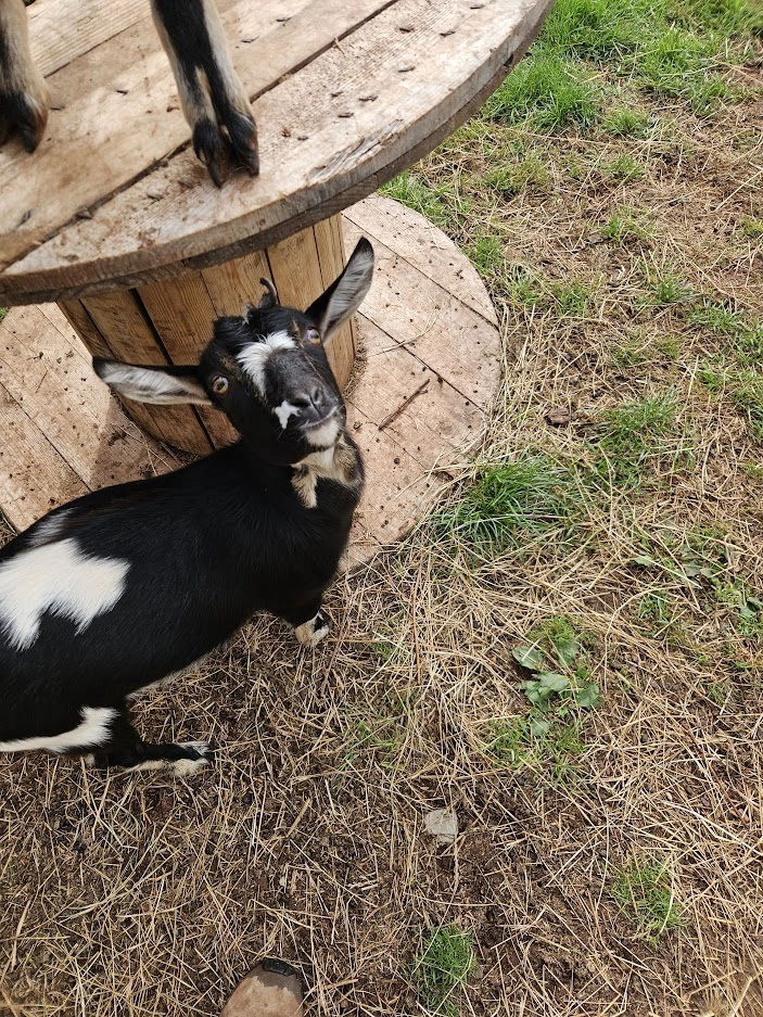 Children also love visiting the guinea pigs, watching the alpacas enjoying their hay, and meeting our five miniature Nubian goats, who are a favourite at feeding time. The rabbit pen offers a calmer spot to pause and enjoy quieter moments with some of our smaller residents.