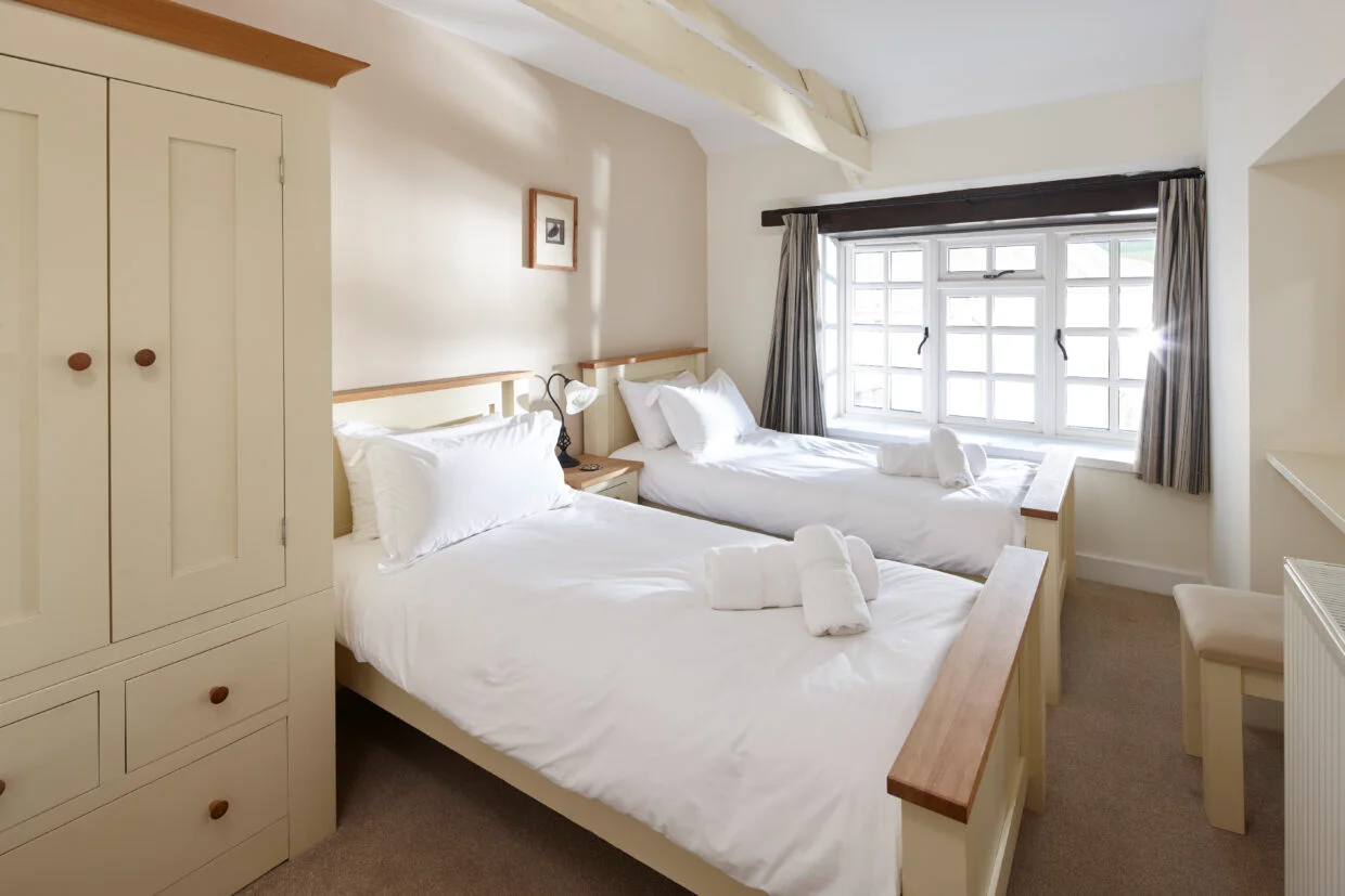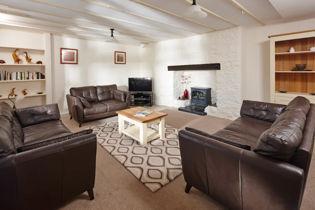 Ambrook is a well-designed four-bedroom home offering generous space for families or groups, with two en-suite bedrooms and a comfortable, flexible layout. One end bedroom opens directly onto the upper terrace, where fabulous views, a firepit, BBQ, and ample seating create the perfect setting for outdoor dining, socialising, and enjoying long Devon evenings together.